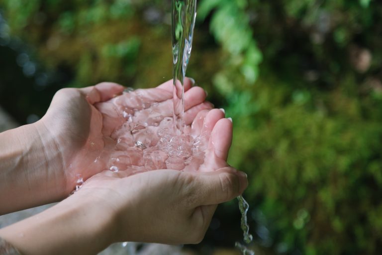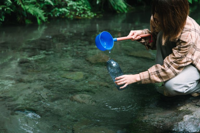 最後にたどり着く湧水場では、透き通った名水を実際にくむことができます。