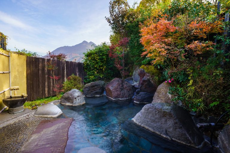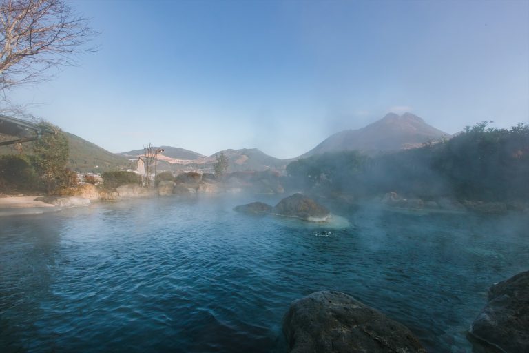 湯の色はその日ごとの自然条件によって微妙に表情を変え、訪れるたびに違った景色と出会えるのも大きな魅力です。由布岳を望む開放感の中で湯に身を沈めると、張りつめていた心までゆっくりとほどけていくのを感じます。