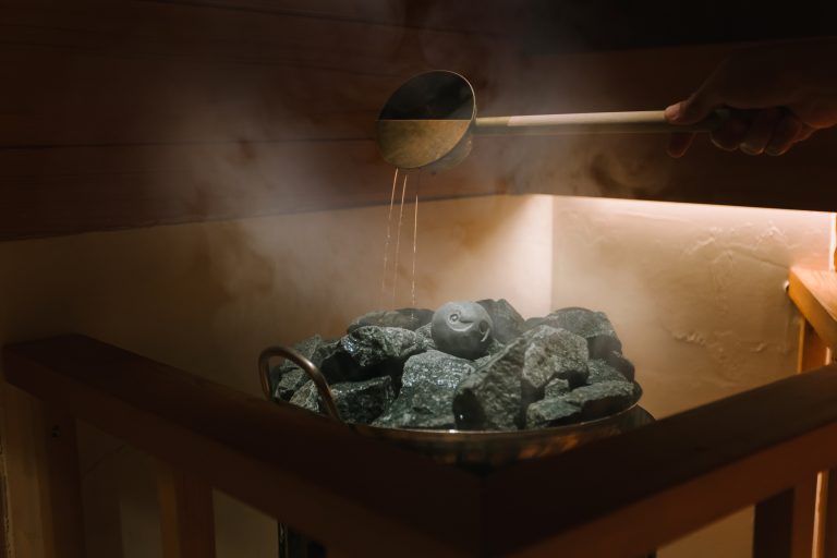 (写真:中)ロウリュで一気に汗が吹き出します