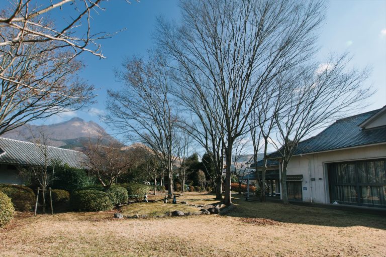 由布岳を正面に望む、圧倒的な開放感が魅力の『山のホテル 夢想園』。