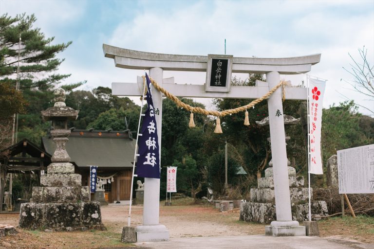 『白岳神社・下宮』は建久年代に建立された歴史ある社で、「知恵が授かる」と言い伝えられる「学びの石」が置かれています。