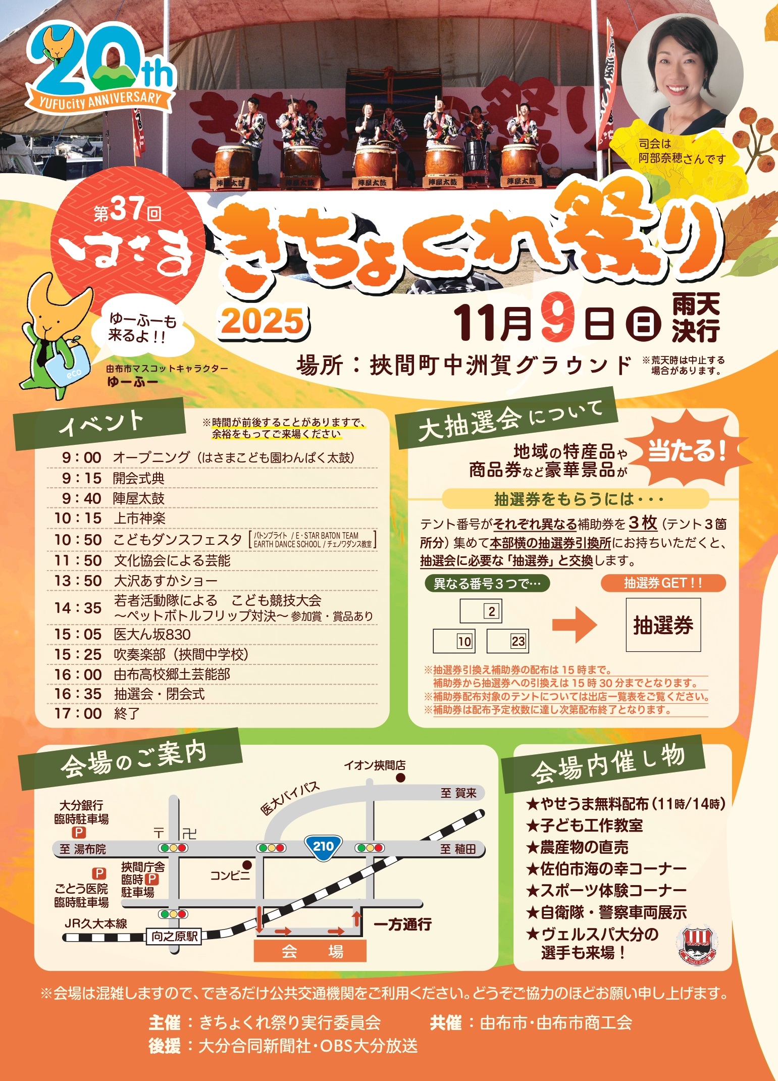 問い合わせ先 はさま きちょくれ祭り実行委員会事務局(挾間振興局地域振興課内) 電話 097-583-1111