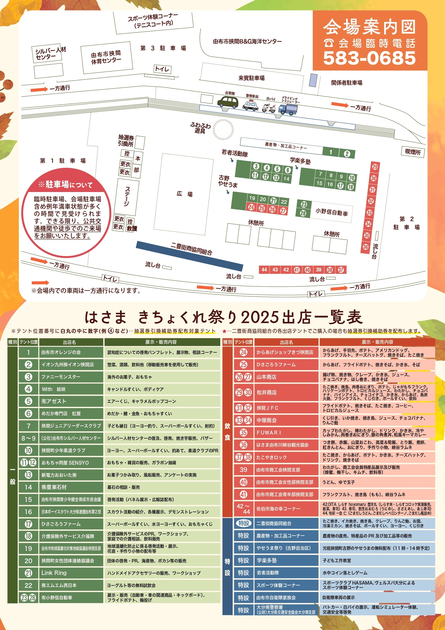 駐車場 :会場駐車場は例年、満車の時間帯が続きます。可能な限り公共交通機関をご利用ください。